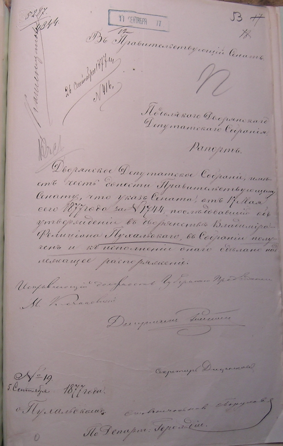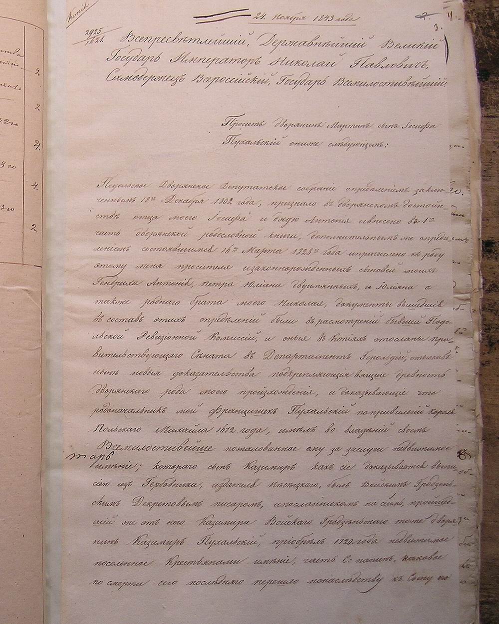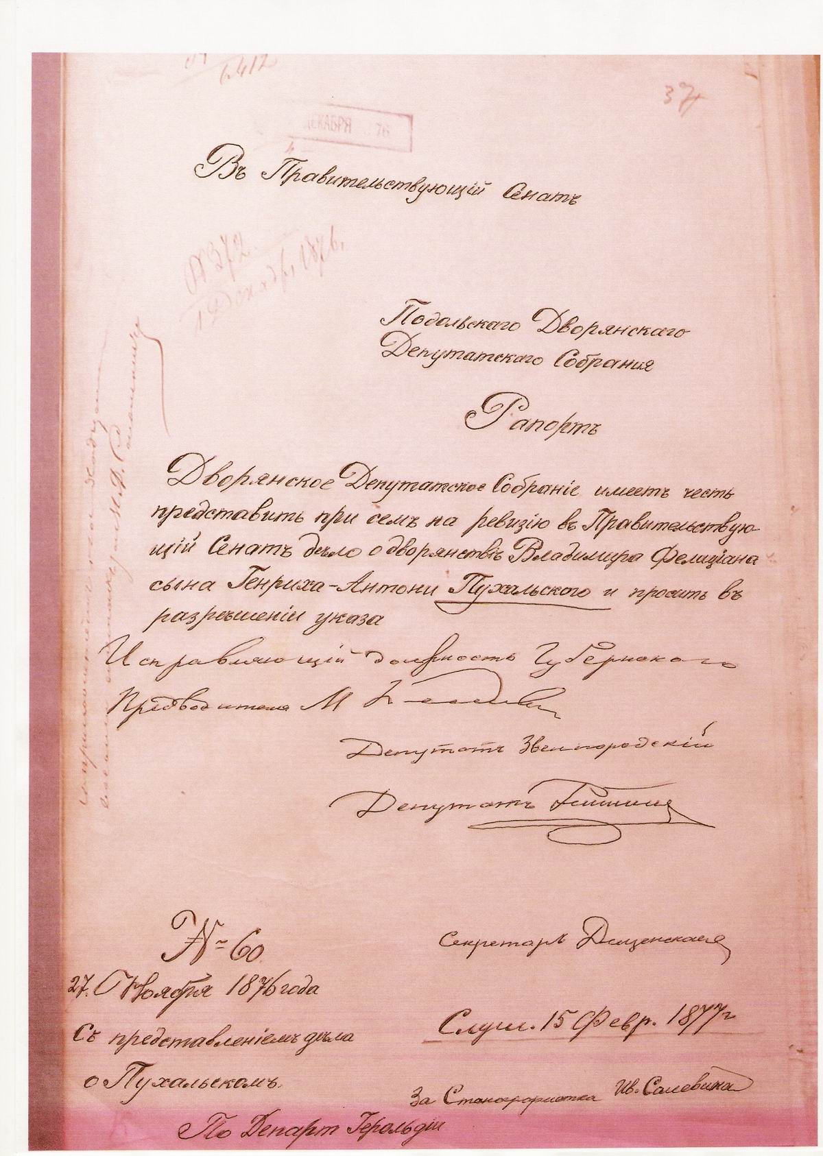 Рапорт на утверждение в дворянстве Владимира Фелициана Пухальского