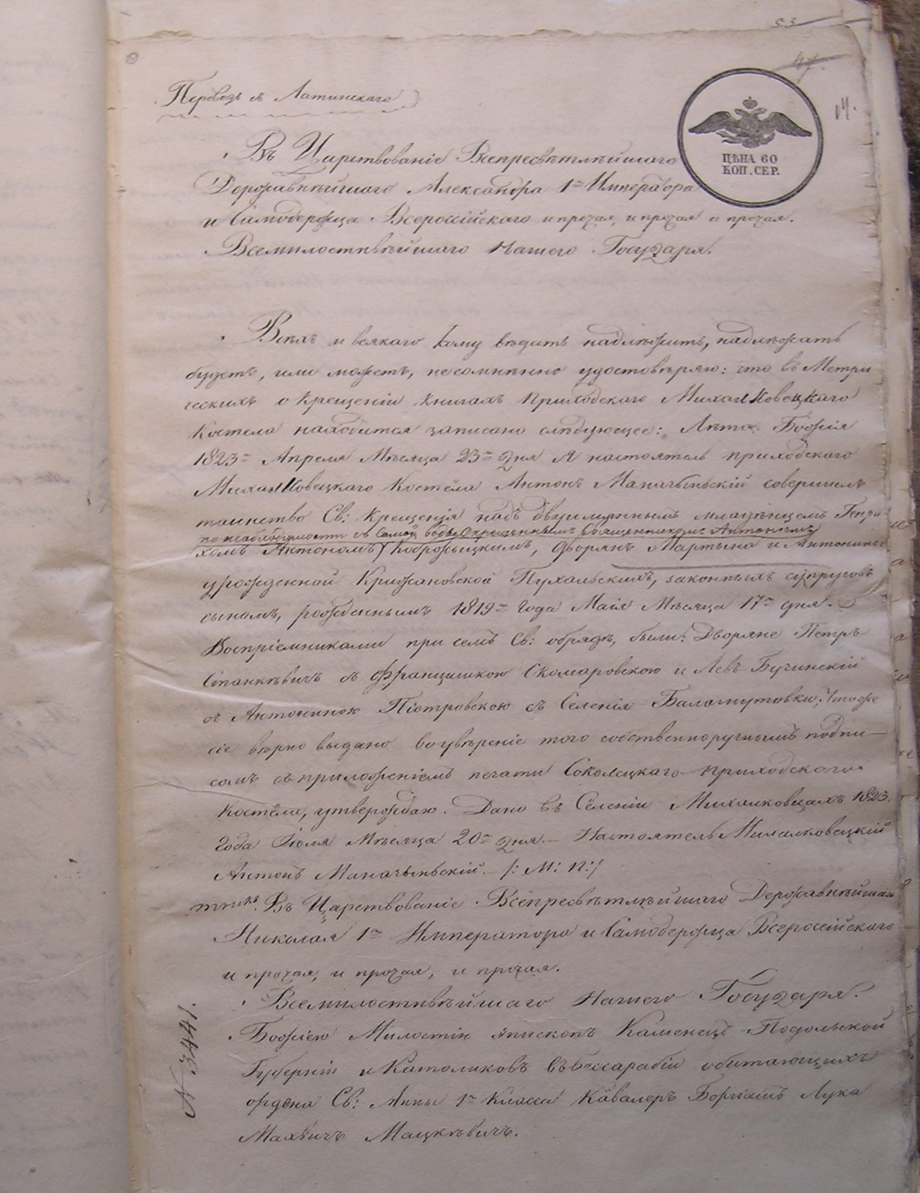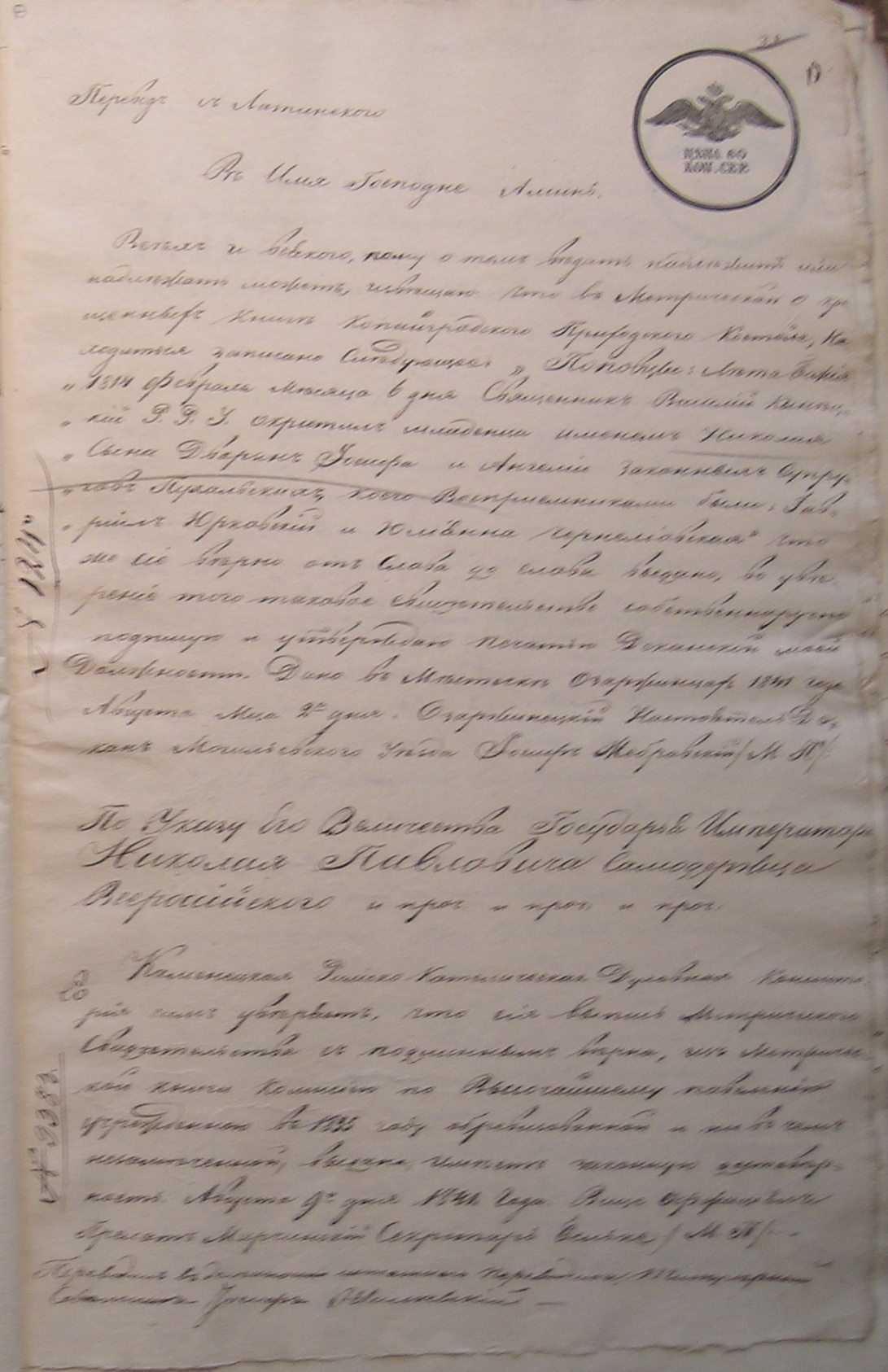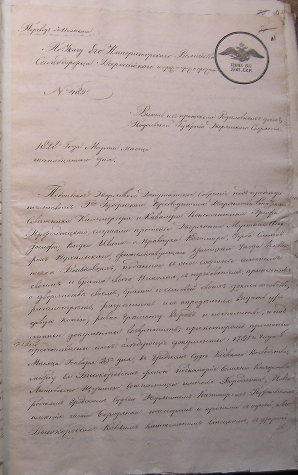 Утверждение о присвоении дворянского звания Пухальскому Владимиру Фелициану