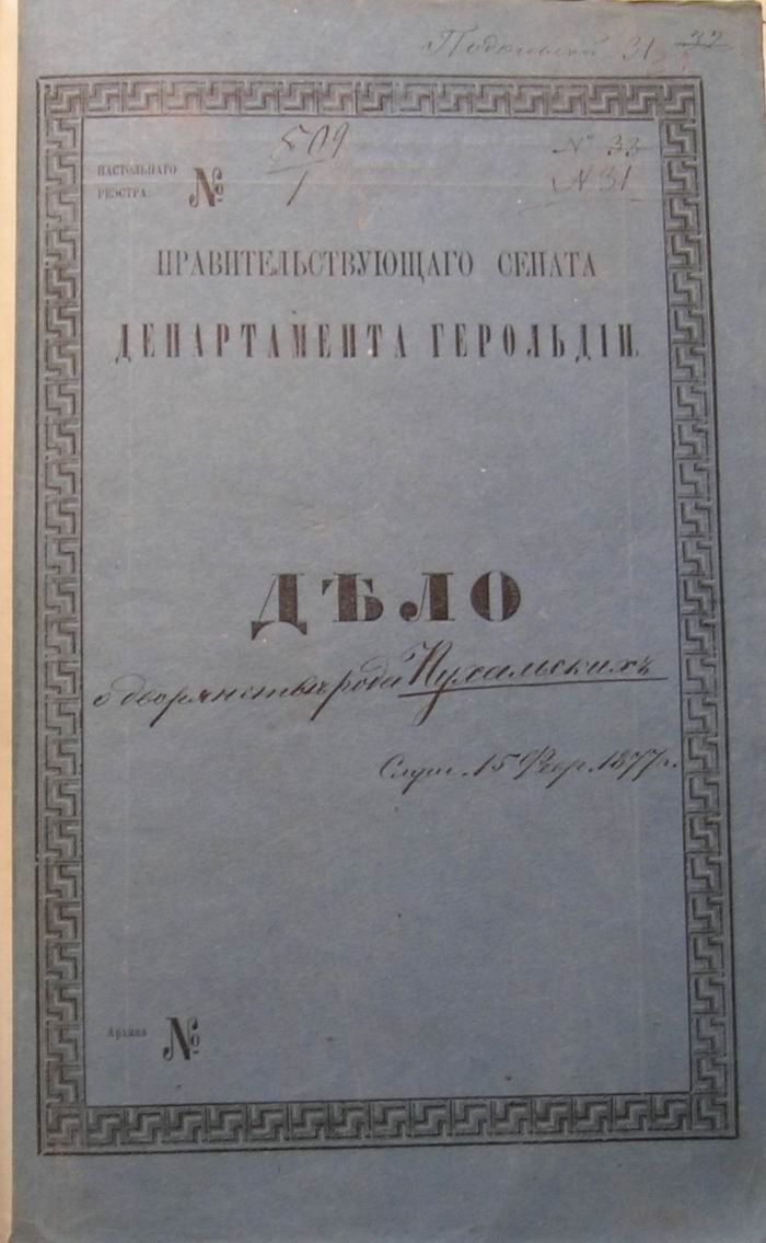 11.Дело о дворянском происхождении рода Пухальских (титульная страница)