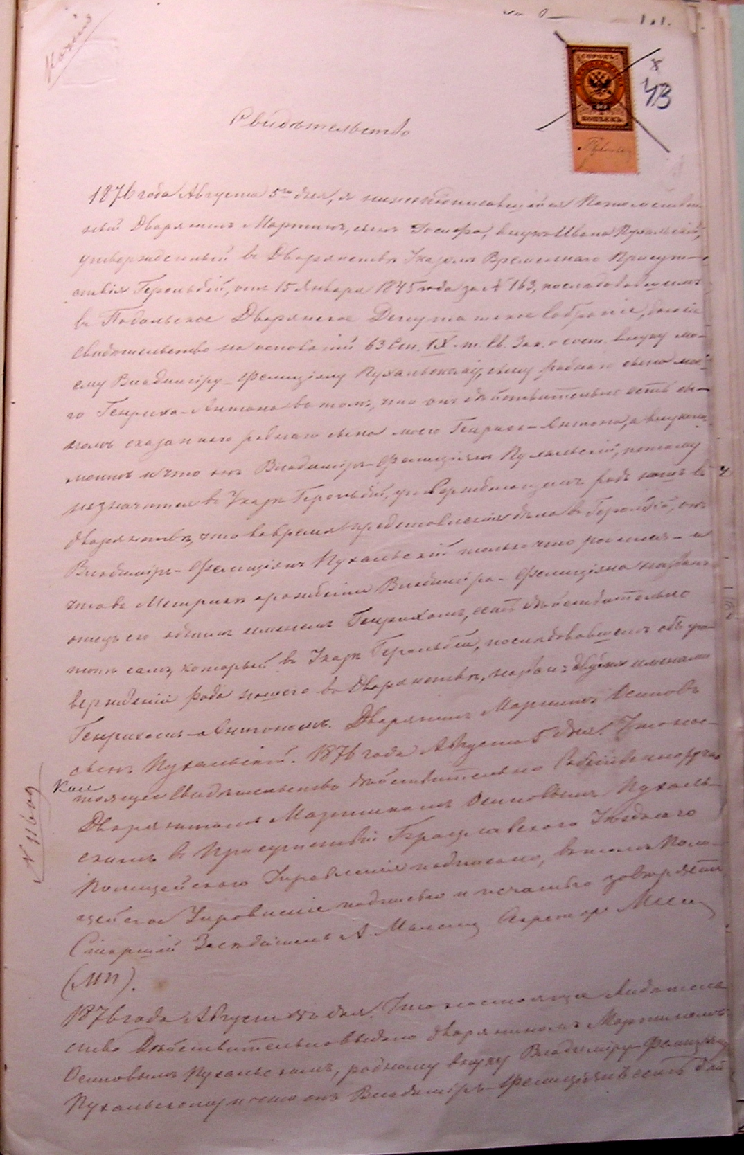 16.Протокол Подольского Дворянского депутатского собрания о причислении детей Франца Николаевича к дворянскому роду