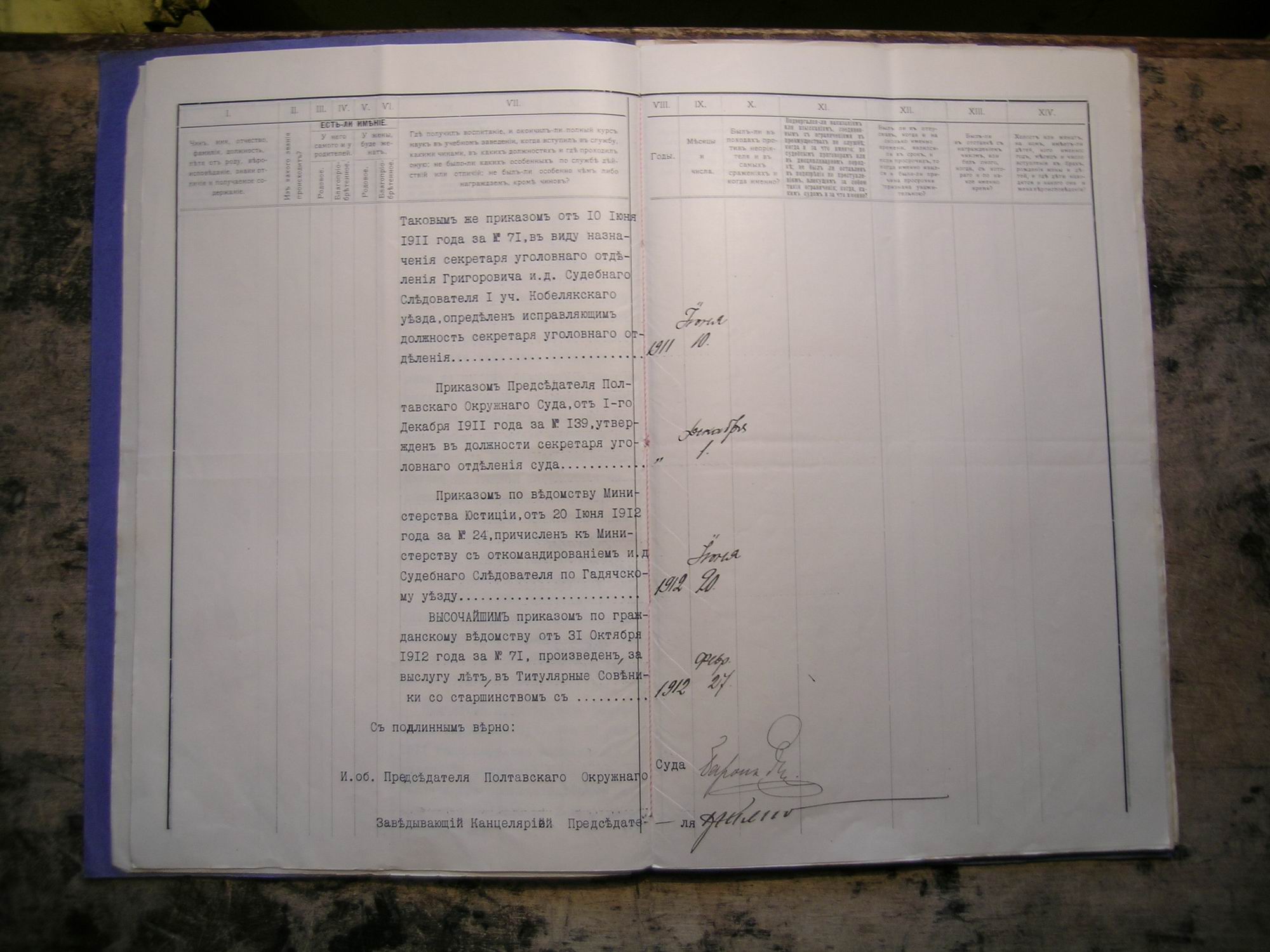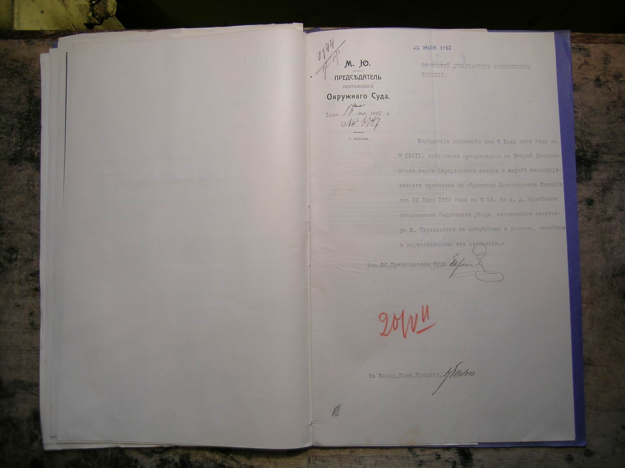 35.Справка о назначении Пухальского товарищем прокурора Полтавского окружного суда в 1914 г.